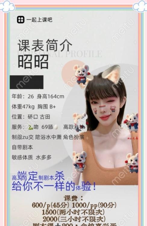 小狼我对这种角色扮演特别感兴趣,这次去武汉出差,发现这个昭昭就在附近遂约之,选的老师剧本。课室环境尚可,进门感觉人照差别不大,交完水费开始洗澡,有漱口水这点好评,双双用完漱口水后马上蛇了上来,嘴里确实没有异味,蛇得很舒服。老师剧本是我自己写的,高中时候一直对英语...未登录用户只显示部分内容,完整内容请登陆后查看